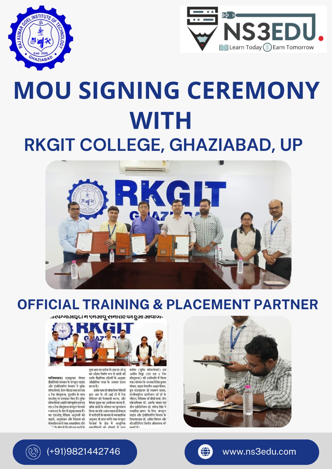 MoU signed between NS3EDU and RKGIT